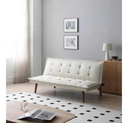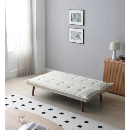 El diseño reclinable de este futón permite ajustar la posición según tus necesidades, brindando comodidad tanto para sentarse como para descansar. Su estructura sólida y elegante color negro de las patas aportan un toque moderno que complementará tu decoración.