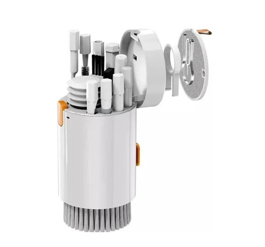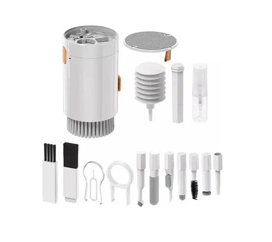 Contiene varias herramientas de limpieza, como cepillos de limpieza grandes, paños limpiadores de pantallas, sopladores de polvo, etc., para una limpieza más completa.
