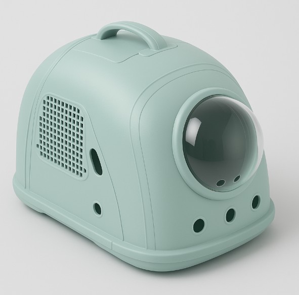 Su diseño tipo cápsula incluye una cúpula transparente y desmontable que permite observar a tu mascota en todo momento, reduciendo el estrés durante el transporte. Fabricado con materiales resistentes y livianos, cuenta con ventilaciones laterales y una base firme que mantiene estable al gato.